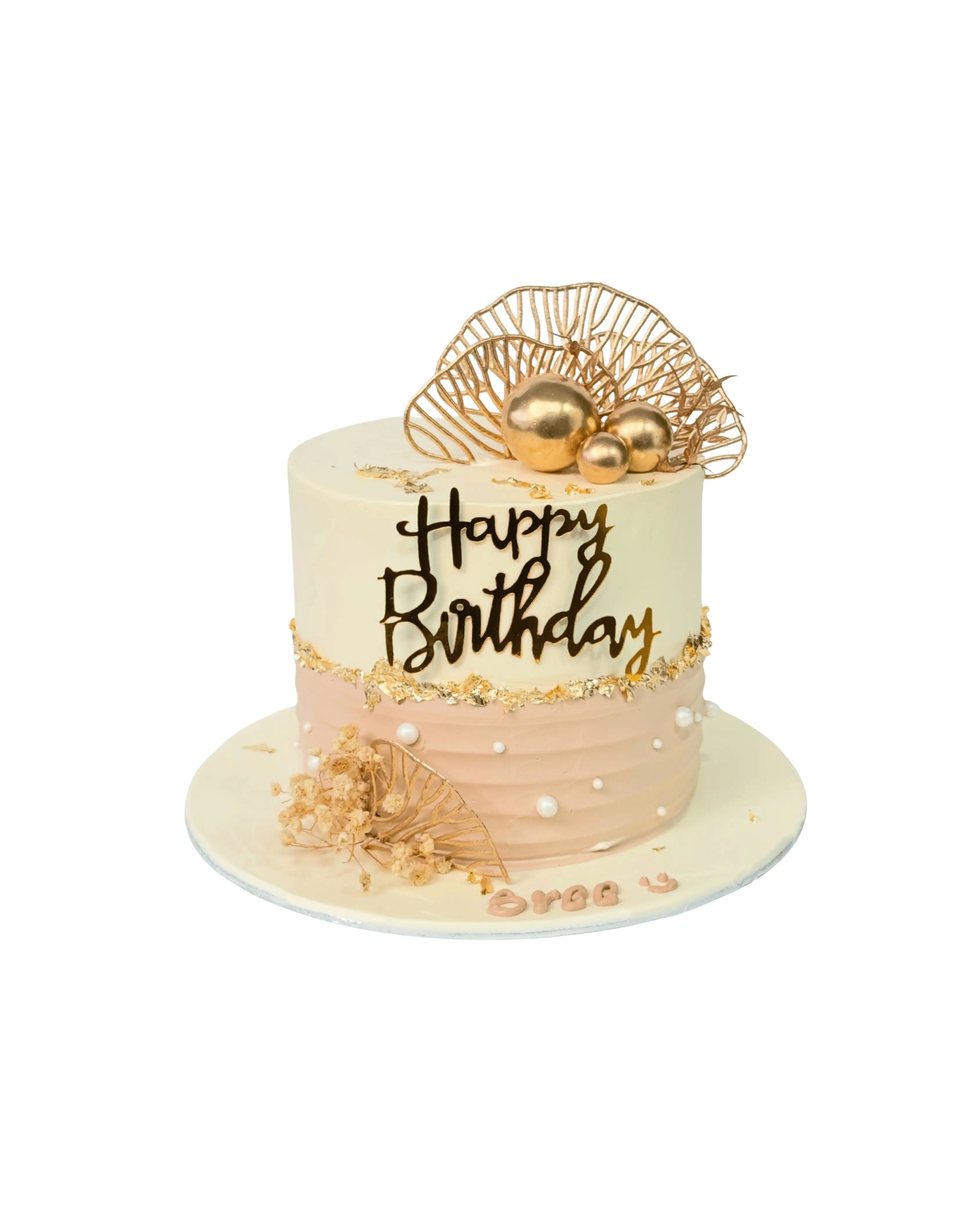 A beautifully crafted fresh cream cake with smooth finishes, subtle textures, and elegant gold accents. Ideal for stylish birthday celebrations and special occasions that call for a refined centerpiece.