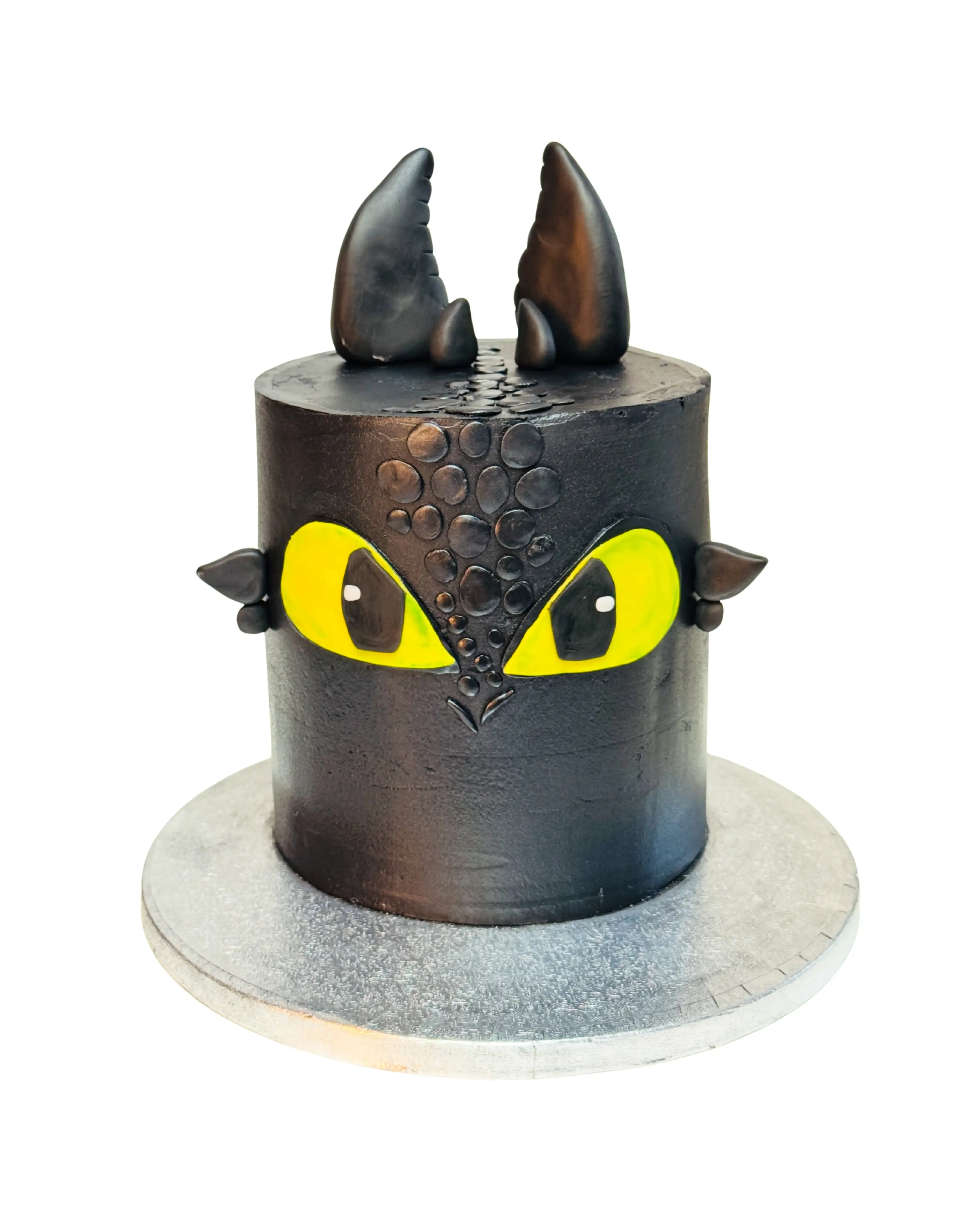 A bold dragon inspired cake finished in smooth buttercream with detailed sculpted features and striking eyes. Ideal for fantasy lovers, themed birthdays and unique celebration cakes that make a statement.