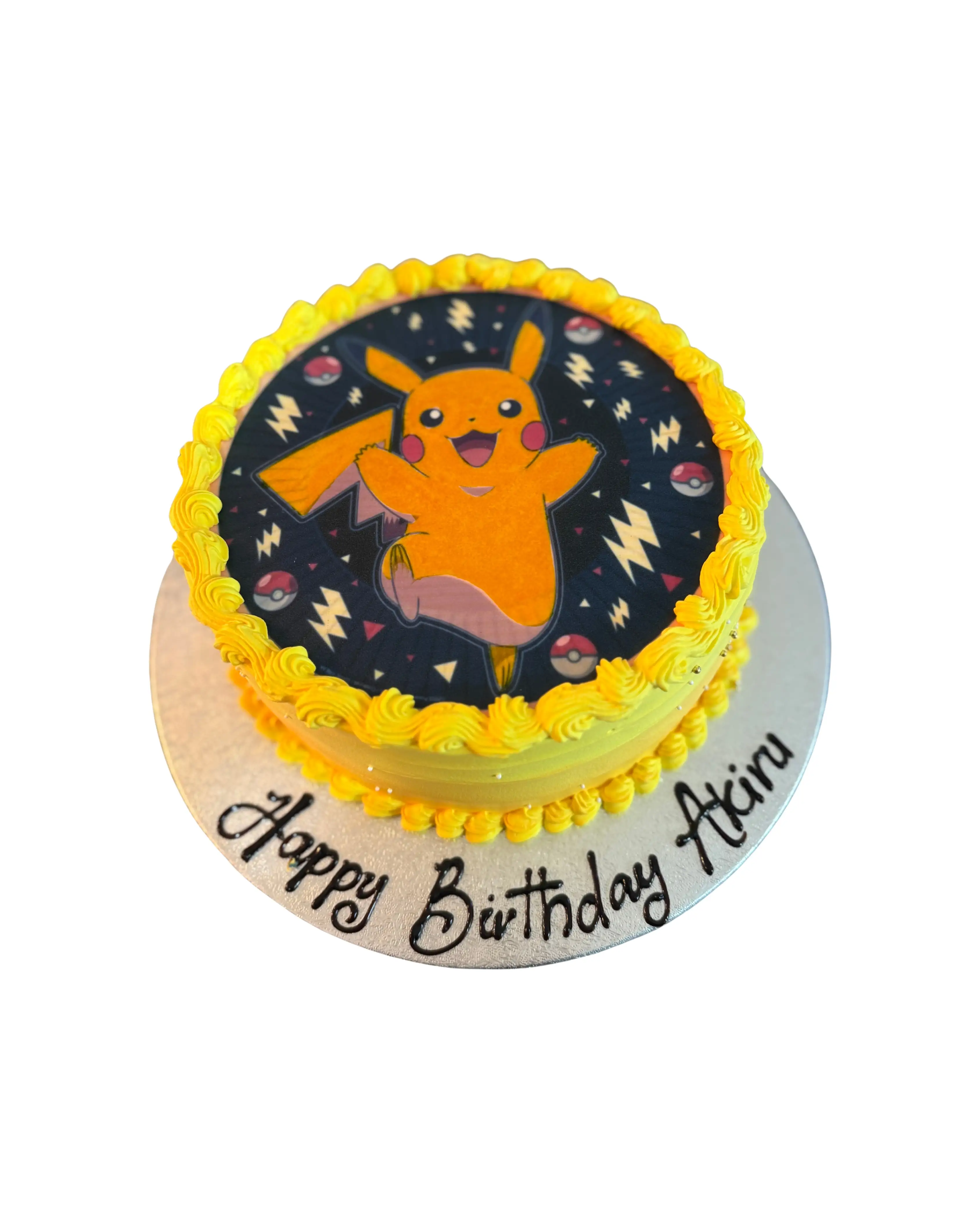 A fun Pikachu themed fresh cream cake with a bright edible print and vibrant yellow piping. Perfect for kids birthday parties and Pokemon fans who love colourful and playful cakes.